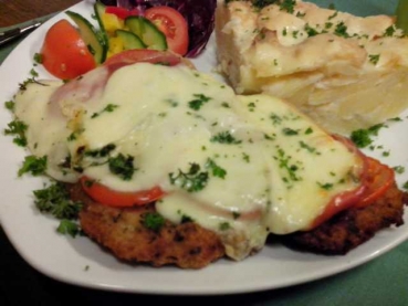 Unsere Schnitzel werden frisch vom Schweinerücken geschnitten und platiert, in Mehl (Typ405) gewendet und mit frischen Eiern und Semmelbröseln paniert.